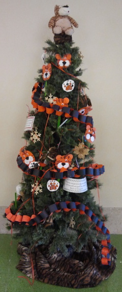 At The Phoenix Children's Hospital, there are a ton of Christmas trees decorated on the main floor. They are awesome. I took pictures of my favorites, and this post is pretty much dedicated to them. They are decorated by volunteers, and they definitely make a hospital stay more cheerful and tolerable. Gilbert High students, there is a tiger tree! I bet they put that one up because Matthew is staying in this hospital...And the cow's sign says, "Have a 'Dairy' Merry Christmas!"